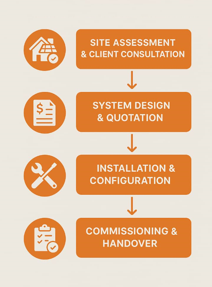 Train the client on system usage, maintenance, and basic troubleshooting.